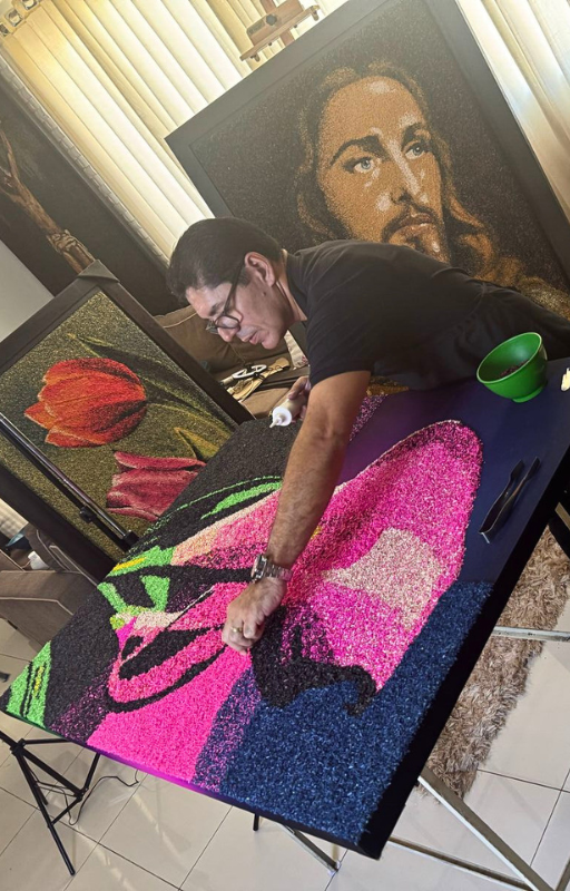 "Me identifiquei muito com a técnica do pó de serra, este será o primeiro de muitos, espero me aperfeiçoar cada vez mais. Agradeço muito a você Josué por ter nos dados a oportunidade de conhecer esse lindo trabalho.